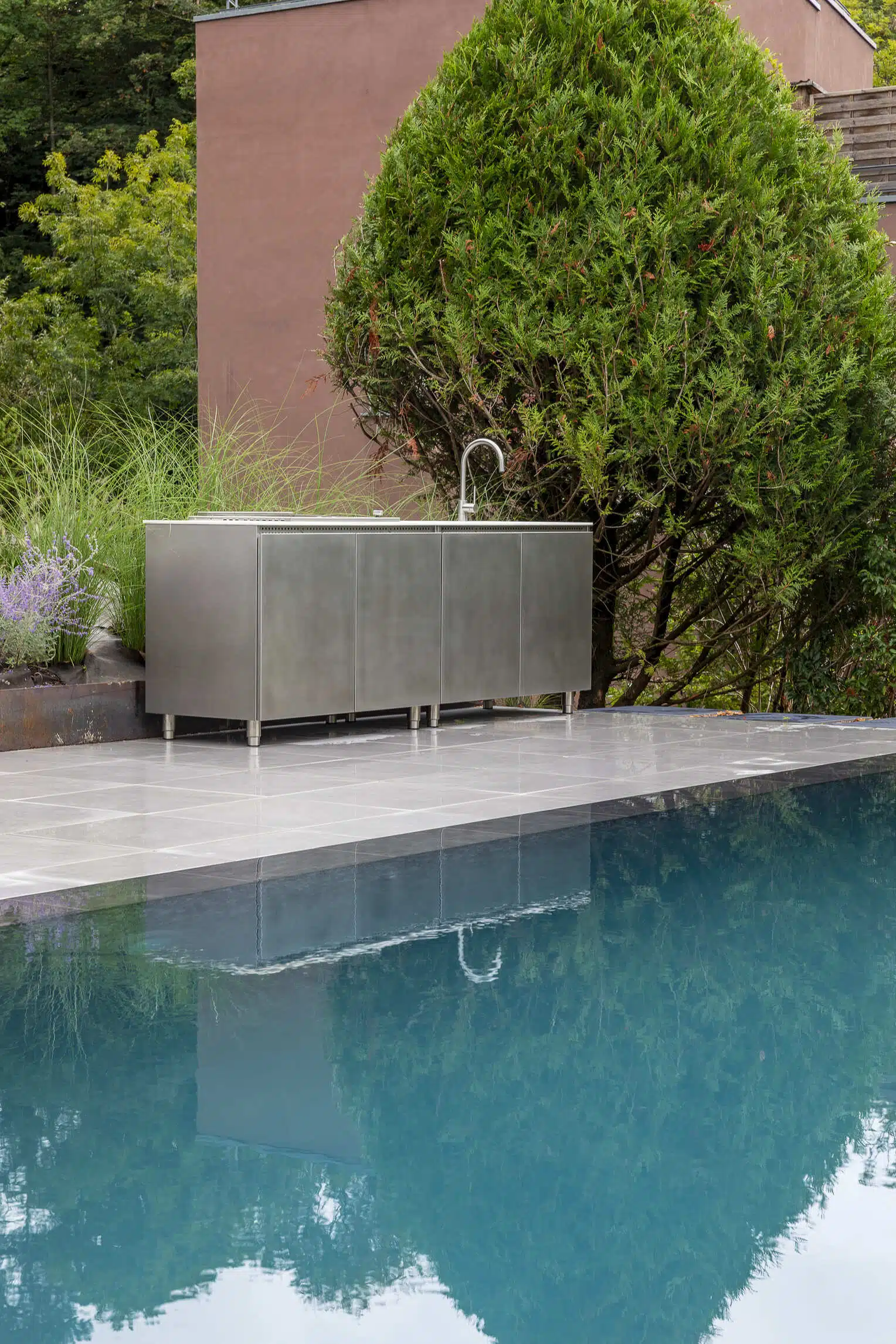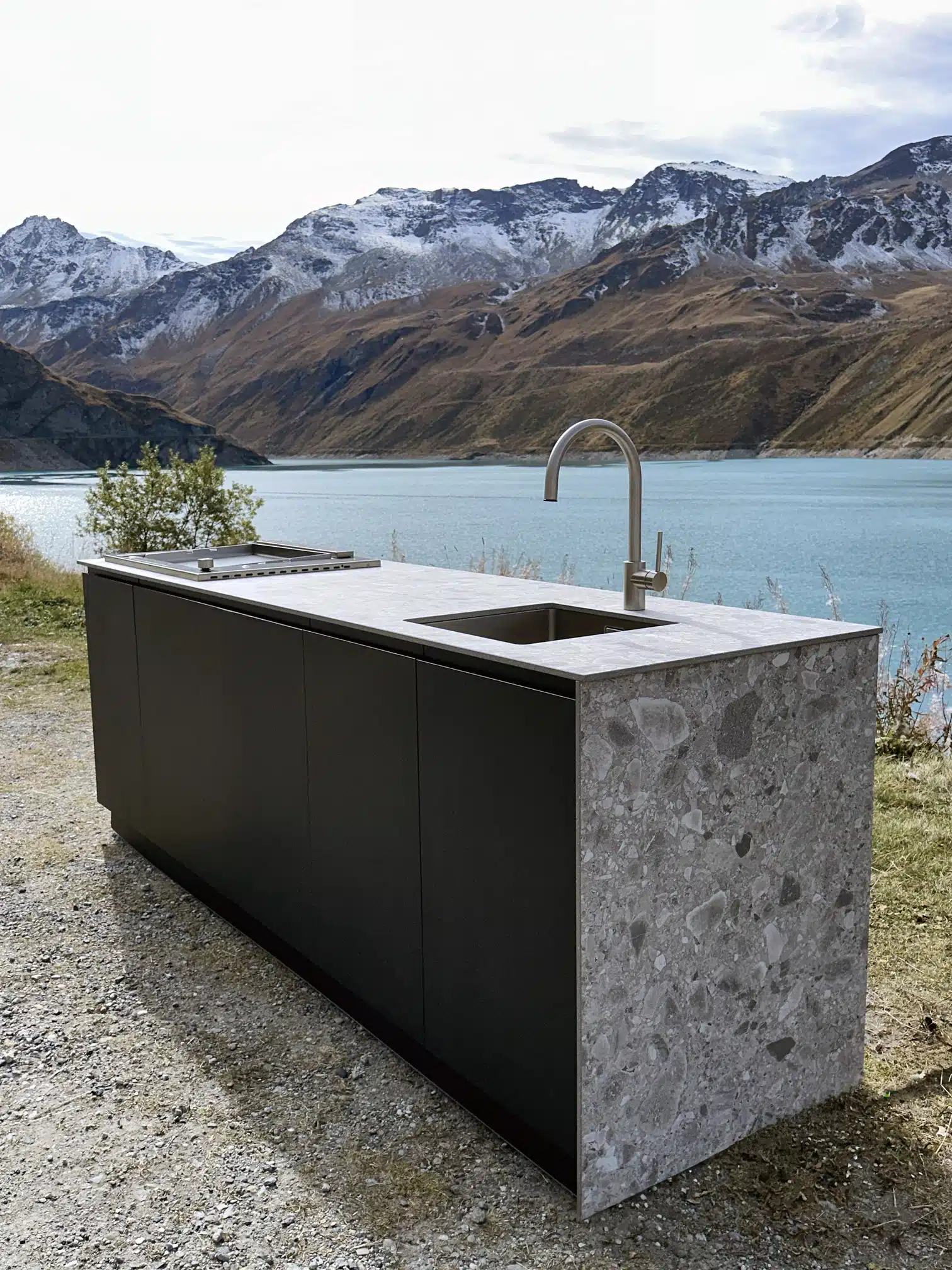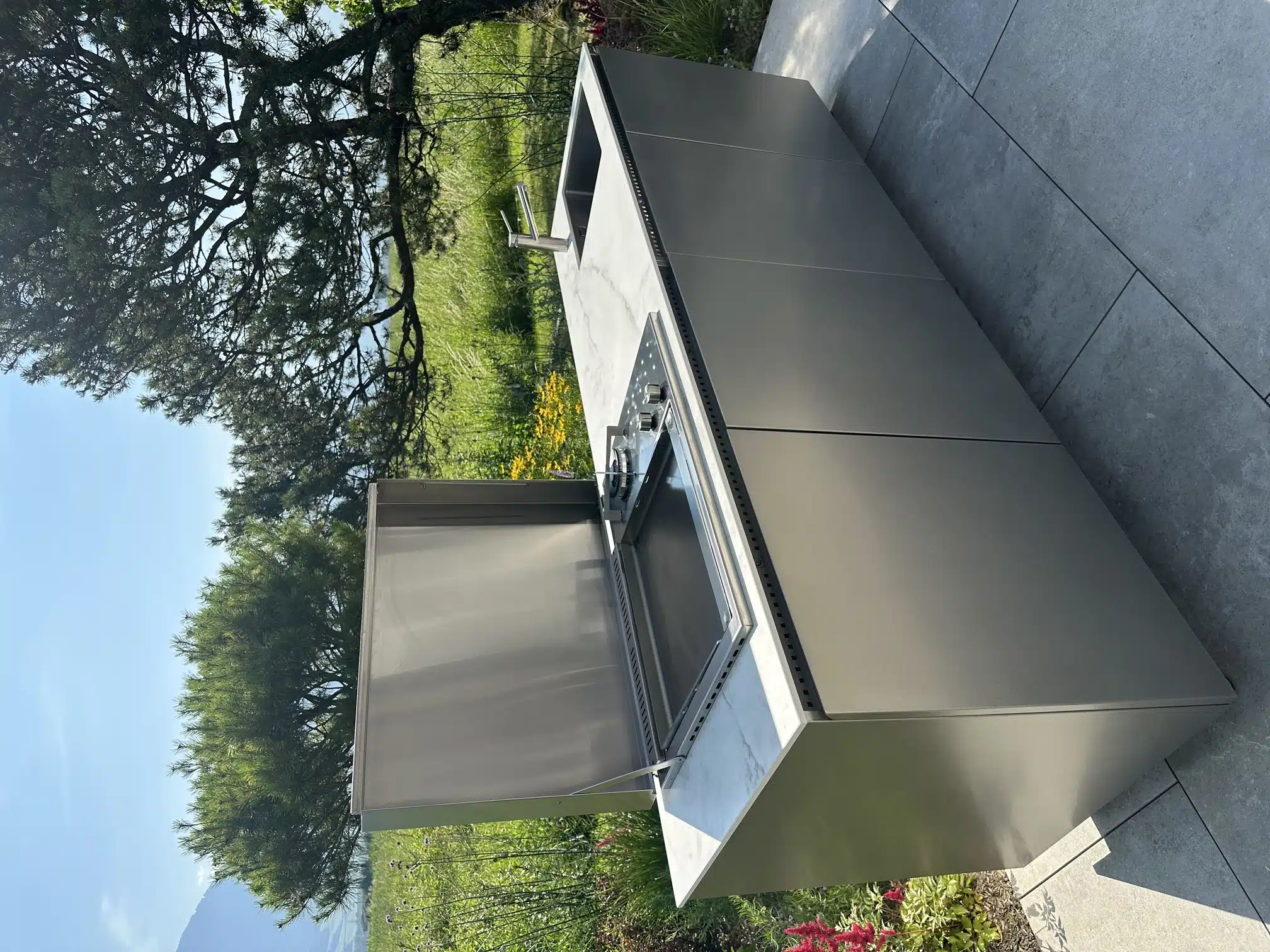 Conçues et fabriquées en Suisse, nos cuisines extérieures répondent à des exigences élevées en matière de qualité, de précision et de durabilité. Chaque élément est pensé pour un usage en extérieur exigeant, avec une sélection rigoureuse de matériaux reconnus pour leur résistance aux conditions climatiques, leur stabilité dans le temps et leur facilité d’entretien.