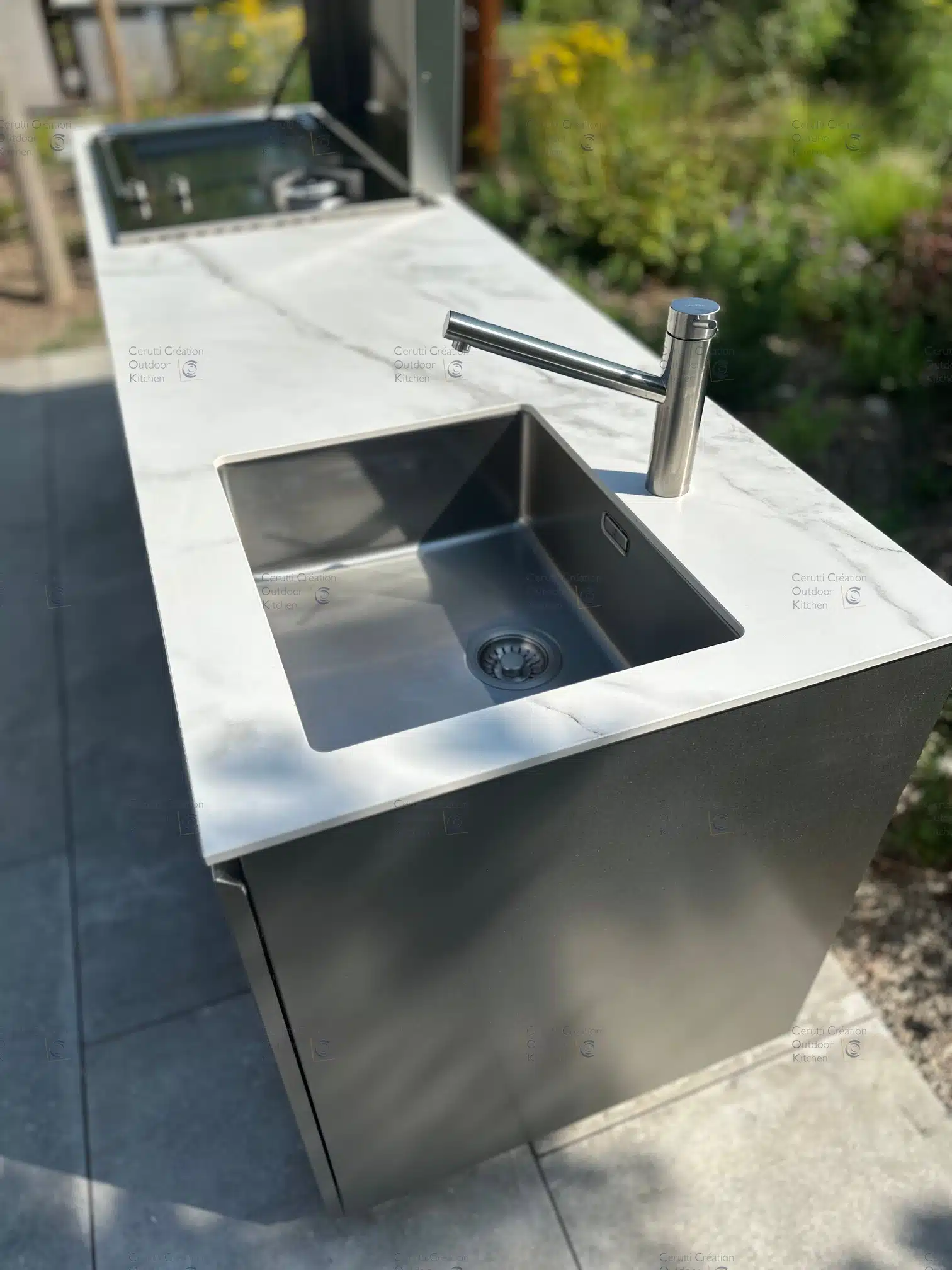 Les finitions, l’assemblage et les surfaces sont pensés pour conserver leur aspect et leur fonctionnalité saison après saison, garantissant une cuisine extérieure fiable et pérenne.